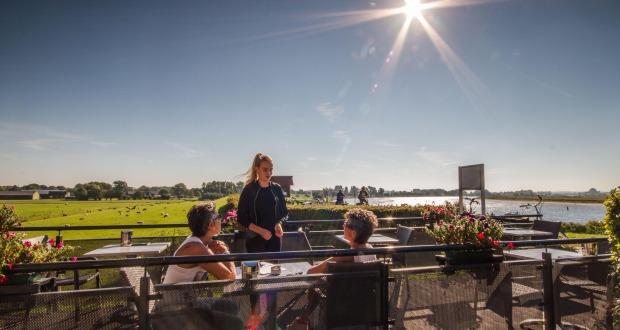 Geniet van de beroemde appeltaart én het indrukwekkende uitzicht op het rivierenlandschap. Bij het Theehuis stappen veel fietsers, wandelaars en rolstoelers op een klein pontje. Dit Zalkerveer brengt passagiers tussen ’s-Heerenbroek en Zalk naar de overkant van de IJssel.