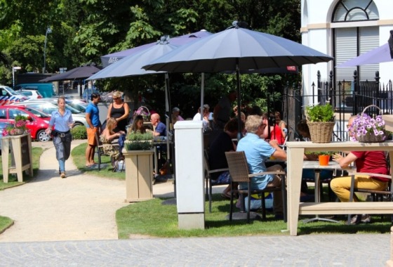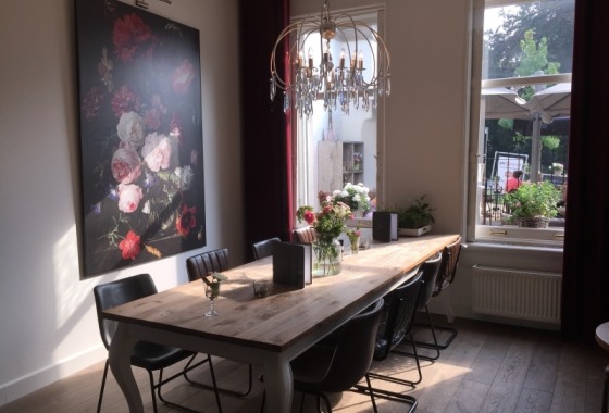 Een prachtige wandelroute voert u langs ons pand. Het lunchcafé bestaat uit meerdere vertrekken. Als u binnenkomt in de vestibule met de statige trap kunt u linksaf naar het lunchcafé. Dit linkergedeelte heeft een mooie erker met een drietal romantische zitjes met hoge luiken en schitterende plafonds. In dit gedeelte vindt u ook de bar en de overige zitjes. Op de tap hebben wij het kwaliteitsbier Hertog Jan, Hoegaarden Wit en Leffe Blond. Wij schenken ‘1892’ koffie; dat is een eigen blend, speciaal voor ons gemaakt. Op onze espressomachine maken wij voor u de lekkerste espresso’s, cappuccino’s, lattes, en lungo’s. De ruimte wordt gescheiden door een authentieke kastenwand met bossing panelen. Met schuifdeuren is het vertrek in tweeën te splitsen. Een besloten feestje behoort hiermee ook tot de mogelijkheden. Het is ook mogelijk de besloten patio die hier achter ligt, er bij te betrekken. Villa Suikerberg heeft maar liefst drie terrassen. Achter het pand beschikken we over een intieme binnentuin. Aan de voorzijde hebben wij een terras op sfeervol grind en voor het hek beschikken we over een ruim terras op het gras. De ligging is subliem. Vanaf een uur of 11 is er de gehele dag zon en het uitzicht over de Potgietersingel en de stadsgracht is weids en geeft een gevoel van rust en onthaasting. Bedenk maar eens een plek in Zwolle waar dat mogelijk is!
