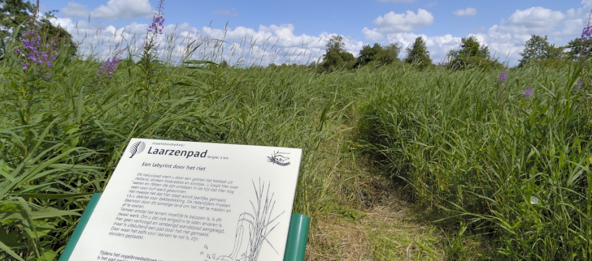 Dat lag er niet zomaar, vertelt Frijlink. Een werkgroep startte in 2007 al met de plannen. Om allerlei redenen kwam realisatie niet rond. “Met Dorpsbelangen hebben we toen in 2014 een nieuwe poging ondernomen, met subsidie van het Nationaal Landschap en medewerking van de gemeente lukte het nu wél”, zegt Frijlink, terwijl hij een informatiefolder uit zijn zak haalt. Op het papier (verkrijgbaar bij De Oase of via het Laarzenpad ) staat alle informatie over het Laarzenpad.